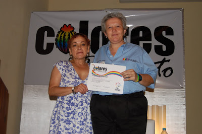 Dra. Carmen Carmona Collins entrega reconocimiento de participación a Lic. Mariaurora Mota por su ponencia "Problemas actuales dela comunidad LGBTI"